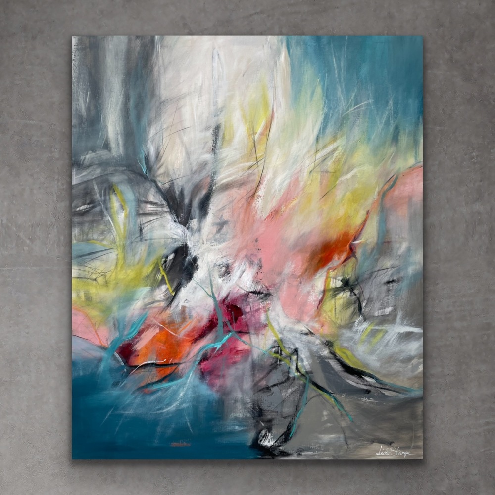 For at opnå ”nerven” i maleriet arbejder jeg i kontraster. Jeg eksperimenter æstetisk med de lyse farver over for det mørke, det kaotiske over for det organiserede, roen over for uroen.  Alt sammen for at kunne trylle et sansemættet univers frem med så meget dybde og energi, at maleriet bliver ved med at overraske og inspirere.