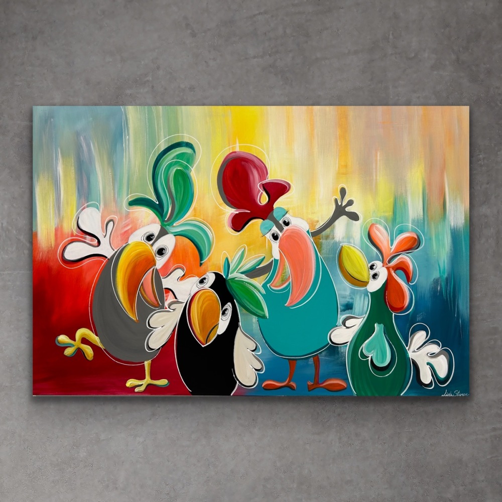“Birds-serien” er kendetegnet ved en livs- og farveglad stil. Her møder du de kærlige og humoristiske fugle, der symboliserer frihed.