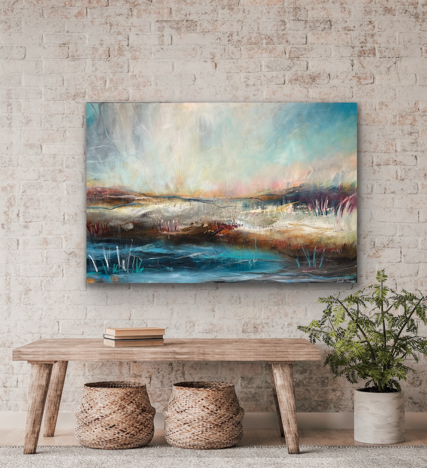 Maleriet er unika og malet med akrylmaling på kvalitetskanvas.