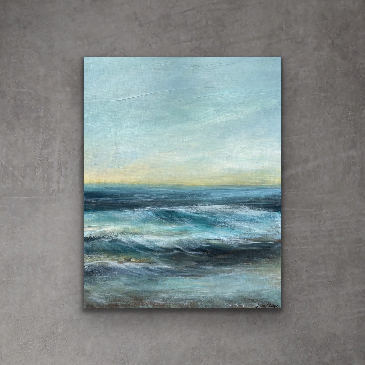 De natur-abstrakte malerier fremstår som en slags komprimerede landskabserindringer. Der er på ingen måde tale om naturalistiske skildringer af bestemte geografiske steder, men derimod stemningsfyldte ekspressive naturoplevelser. Malerierne komponeres af æstetisk håndplukkede elementer, der i farver og former tager sit afsæt i den vestjyske natur. Det er i særdeleshed Lindas kærlighed til havet, klitlandskabet og fjorden, der inspirerer. Det er i disse kraftfulde naturelementer, man som menneske må slippe sin stræben efter kontrol. Det er her, vi kompromisløst gribes af havets utæmmelige bølgegang og vindens barske favntag og dermed også her, vi blot må give slip og beriges af følelsen af at være fri, finde ro og ny energi.