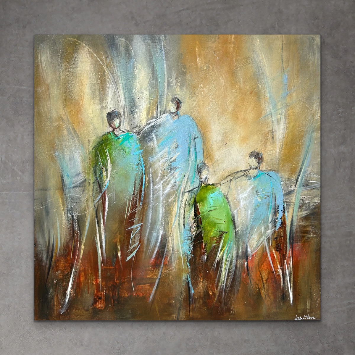 I min relations-serie vil du altid møde to eller flere personer tone frem mere eller mindre tydeligt i en abstrakt baggrund eller sammenhæng. For mig er det især relationen imellem maleriets persongalleri, der er det primære motiv og et æstetisk symbol, der understreger vigtigheden af tætte relationer i vores liv.