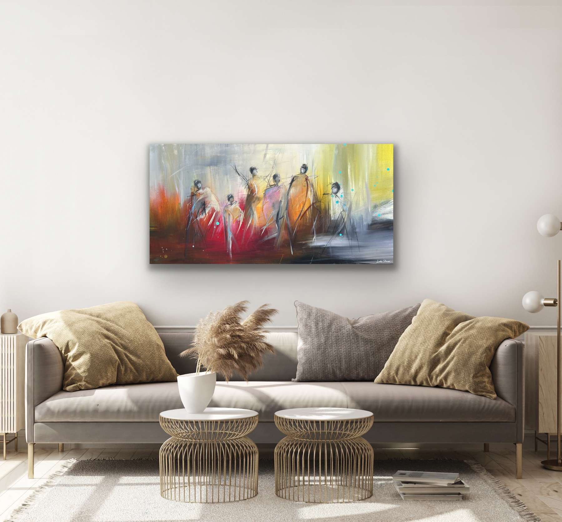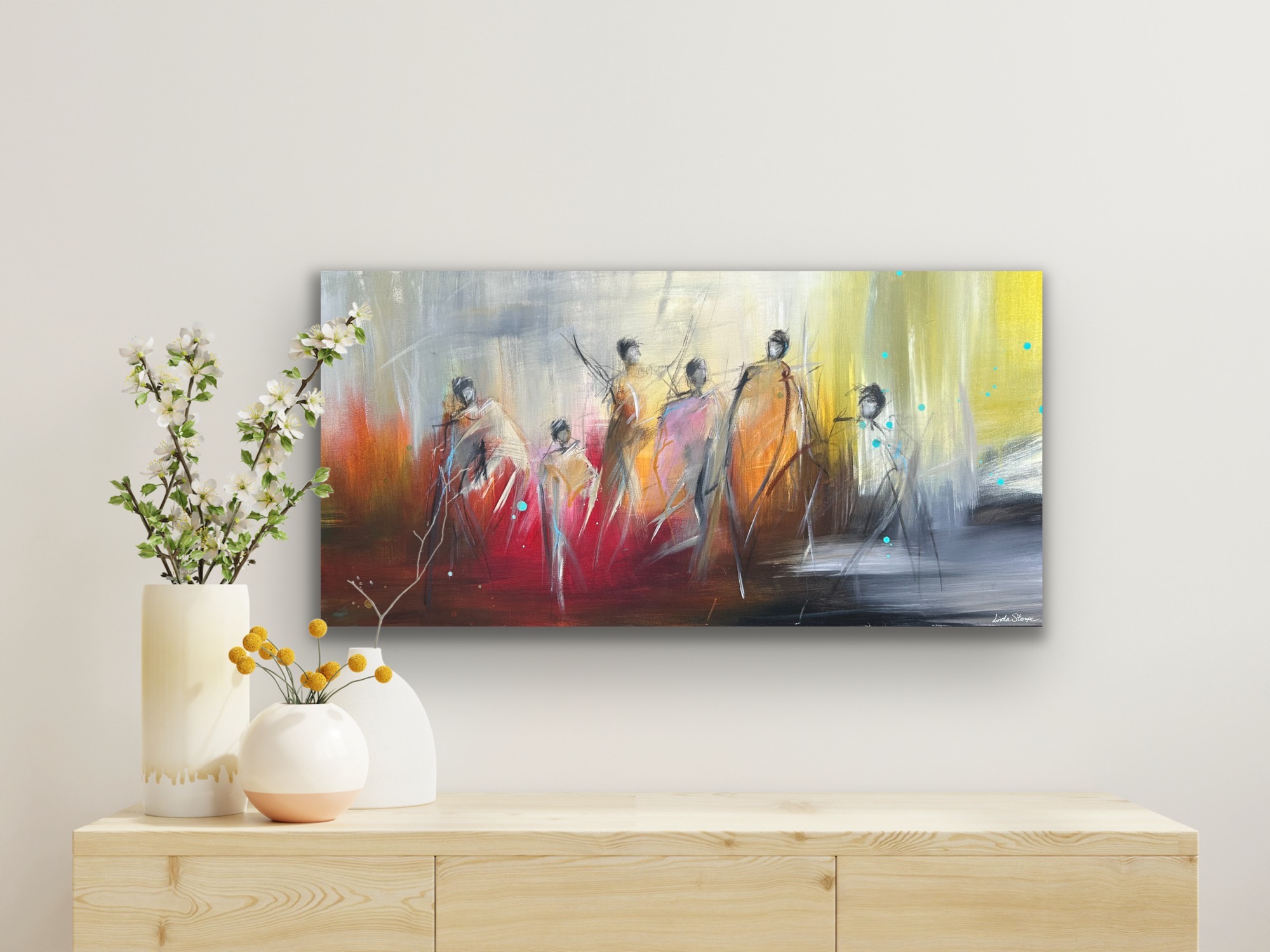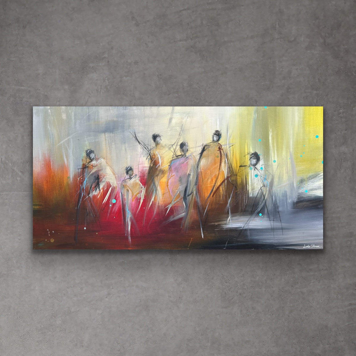 I min relations-serie vil du altid møde to eller flere personer tone frem mere eller mindre tydeligt i en abstrakt baggrund eller sammenhæng. For mig er det især relationen imellem maleriets persongalleri, der er det primære motiv og et æstetisk symbol, der understreger vigtigheden af tætte relationer i vores liv.